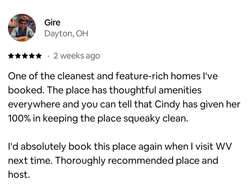 1 Bedroom • 1 Bathroom 1 Bath • Sleeps 1-2🏡 A cheerfully elegant ranch with spa luxury and thoughtful design. Nestled on a quiet, walkable street in Craigsville, this beautifully rennovated one-level home invites guests to experience comfort with character. From the moment you step inside, the blend of modern upgrades and legacy charm is unmistakable.